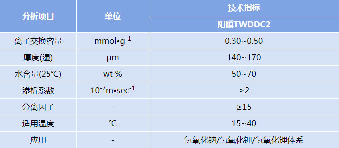 備注:上述數(shù)據(jù)均為參考值,而非離子膜的性能保證值,表格中的數(shù)據(jù)可能變更。